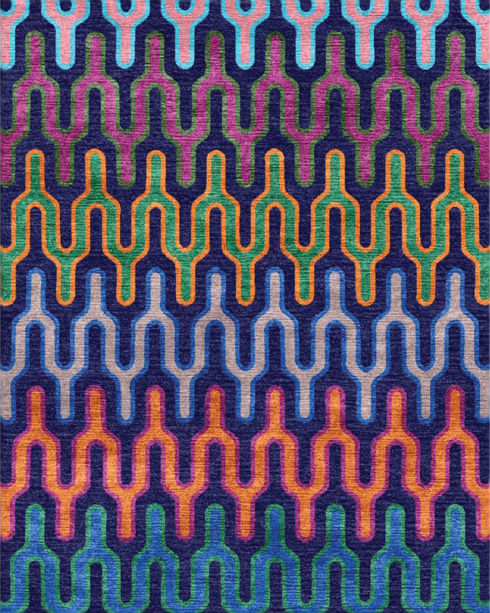 Many modernist architects and designers, including Le Corbusier and Charles and Ray Eames, expressed a Jungian appreciation for a variety of indigenous art forms, often paring them with their spare, pared down interiors and iconic furniture designs. This rug employs a stylized version of a traditional shield motif to create a contemporary rug that is at home almost anywhere.
